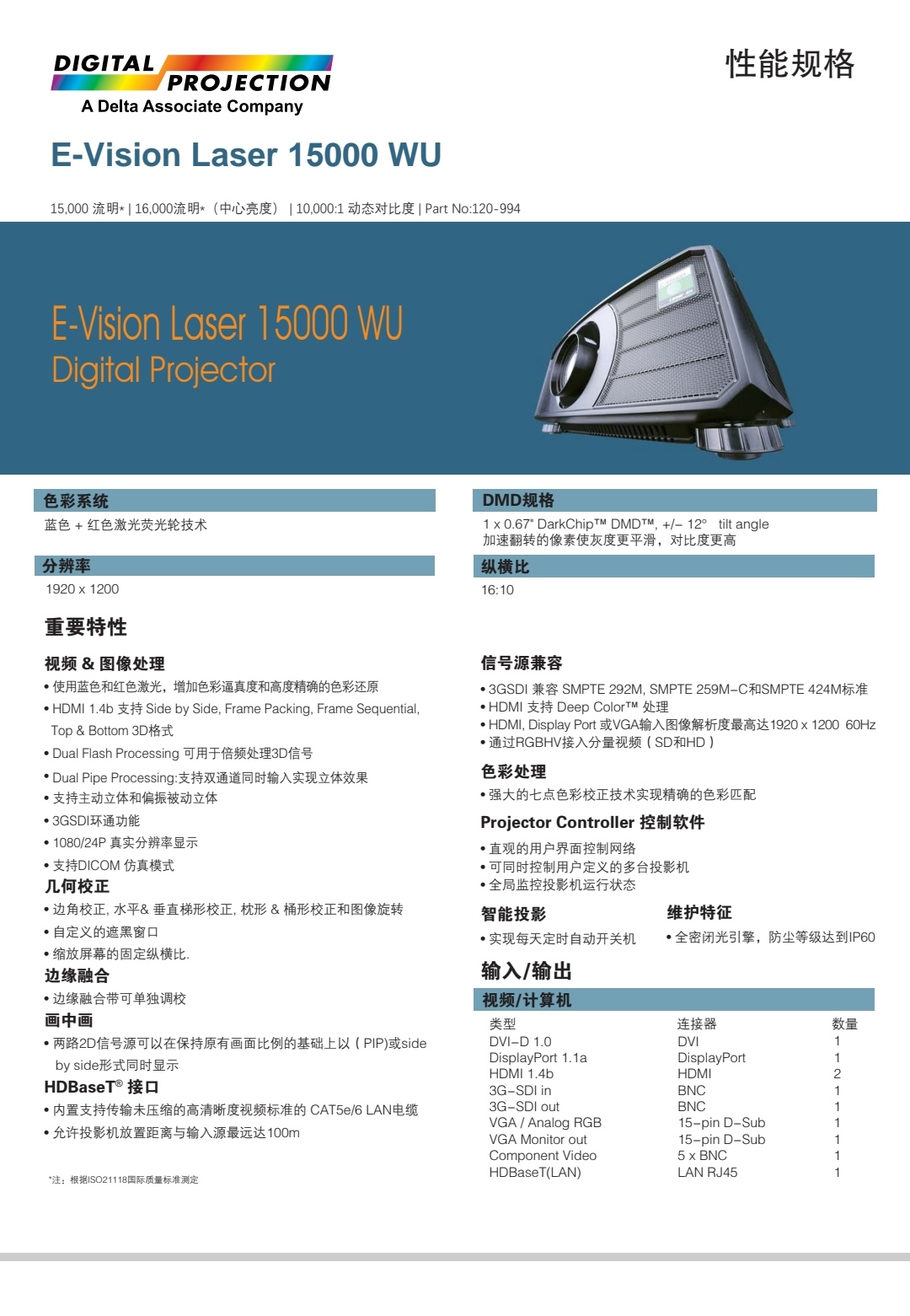 Digital Projection TITAN LASER 37000 WUXGA参数页面提供真实的Digital Projection TITAN LASER 37000 WUXGA配置、功能、规格以... [详细情况]